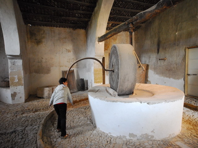 主人安東尼洛(Antonello) 非常願意領著好奇的住客參觀他的橄欖園,這塊土地上種有好幾百株橄欖樹,不同的區塊有不同的樹齡,但所有的橄欖樹都是14世紀自西班牙引進的同一品種。他們家好幾代都一直小心呵護著這些樹。莊院東邊的角落上有個磨坊,磨坊內有個用驢拉的大石磨,到了橄欖採收的秋末,這片莊園可就熱鬧非凡,一麻袋又一麻袋的橄欖被送進這裡的磨坊來,中庭裡曳引機、小汽車、小貨卡頻繁地進進出出好不熱鬧。