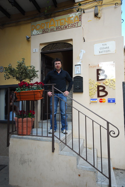 阿格利建多民宿B&B Portatenea的主人菲利普Filippo,瀟灑自如的站在自家門口。
