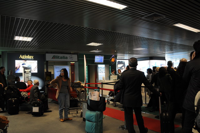 此行自台北到羅馬所買是義大利航空的機票,坐的卻是華航的飛機,到了羅馬之後就轉乘義大利航空的國內線自羅馬到巴勒摩。此為在羅馬機場 check-in櫃檯。
