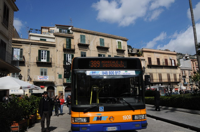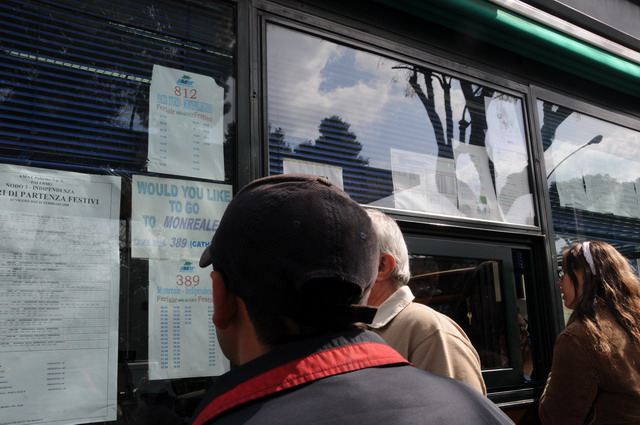 在巴勒摩若要前往較遠一點的景點,如王室山 (Monreale) 、地下墓穴或是 La Zisa 等地,最好的方式就是搭乘公共汽車。現在我正在研究到王室山要搭那一路公車?並觀察別人怎麼買車票。