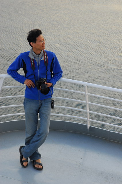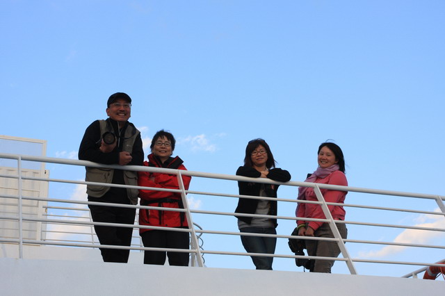 趁天還沒黑時,大家在船舷上看海、看船、等晚霞。