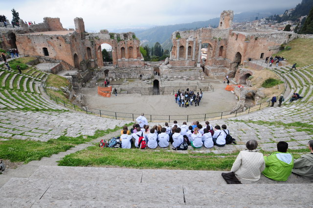 這是陶米納最出名的景點:希臘劇場,非看不可,但第一天去的時候,天氣陰沈、雲霧繚繞,大失所望。