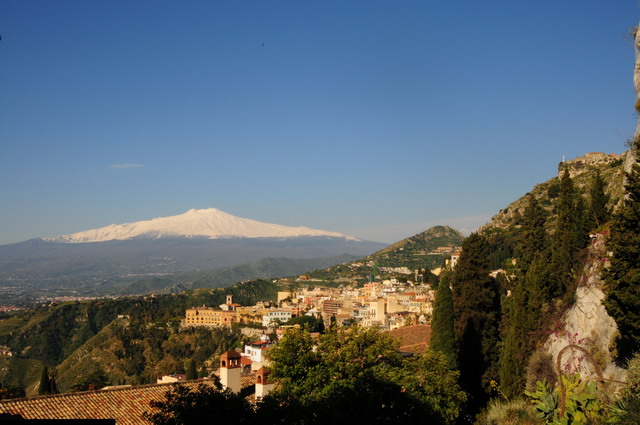 那慕名己久、巨大如金字塔般的埃特納火山,在晴空之下,藍白朗朗的呈現在你眼前,令人感動。