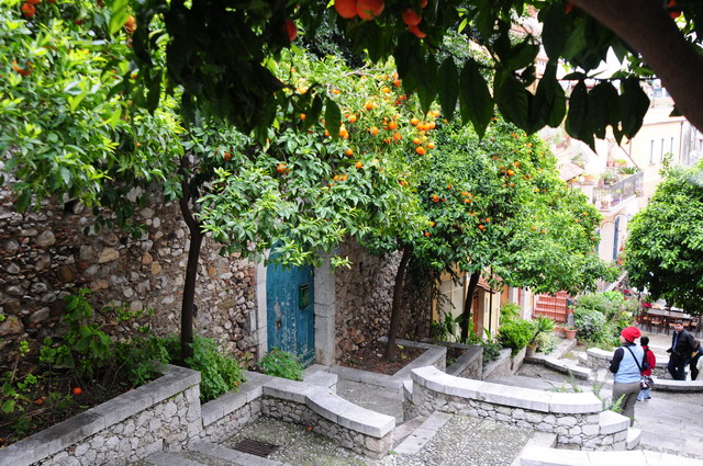 4月正是西西里橘子的產季,陶米納有一條小街,兩旁遍植橘樹,樹上結實累累,橘子又大又紅,而且陣陣清香撲鼻,非常宜人。