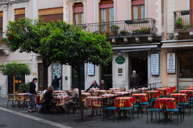 陶米納不但有條橘子街,也有家Orange Bar,就位在人來人往的遊客中心前面,是許多遊客會面、等人、休息、閒聊的好去處。