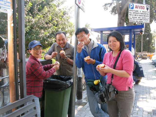 以圖為證,在等待由陶米納開往梅西納的 bus時,在 bus站眾人大啖橘子的樣子。