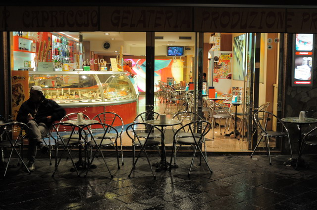 既使入夜了,仍有遊客流連在冰淇淋店前。