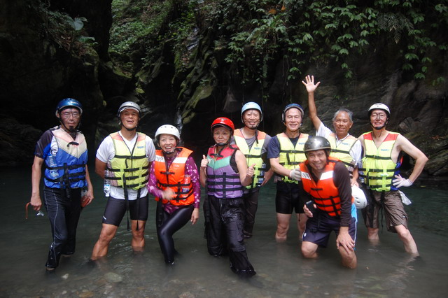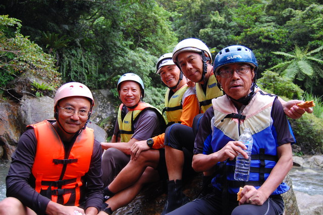 溯溪,就像泛舟一樣,在台灣是一項老少咸宜、娛樂性甚高的活動。尤其,山高水急的台灣,在崇山峻嶺、丘陵起伏之間蘊藏著無數的山澗、小溪,造就了許多驚險刺激又極為有趣的溯溪場所。然而,儘管溯溪活動是如此普遍,但是對這群自年青時就奔走於兩岸三地的企業家、或者嚴守崗位忠於職守的上校將軍、或者終日照顧病患卻疏忽自己的醫生大人而言,卻是個從未嘗試過的人生經驗。