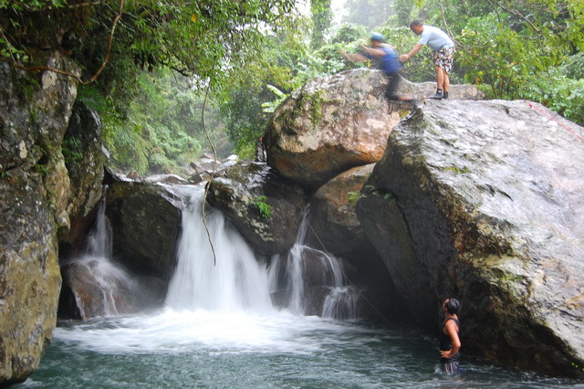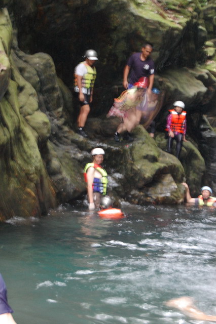 隨行響導找了一處台地,要大家跳水,小試身手。