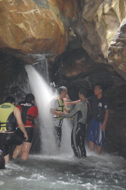 在強勁的水流下先享受一下溪水灌頂的滋味。