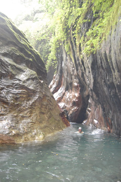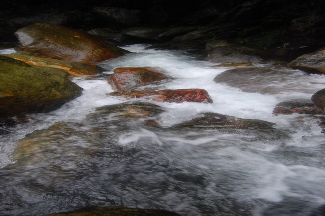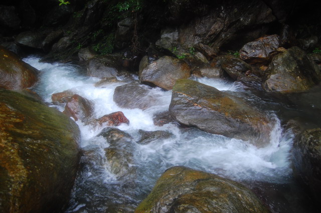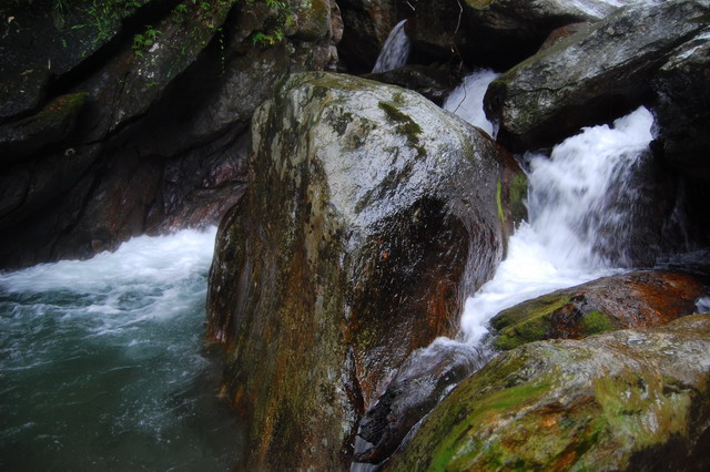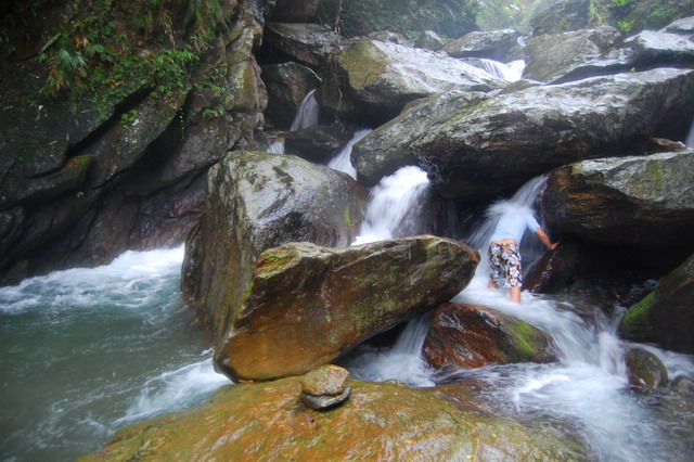溪的兩旁狹谷深邃,光線幽暗,才溯沒多久就開始下雨,即使調高 ISO值、使用最大光圈,照片還是模糊。