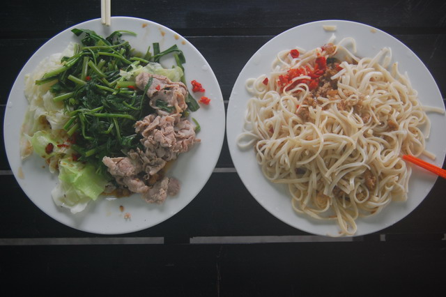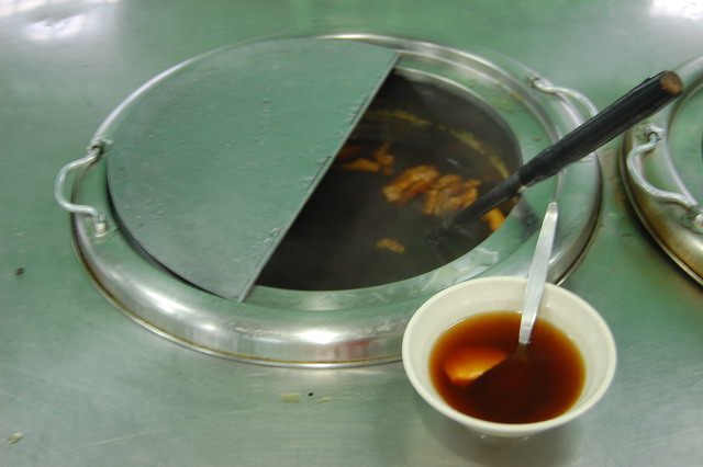 自己動手切阿麵、燙青菜、燙肉片,再淋上香噴噴的滷肉汁和辣椒碎末,棒極了!