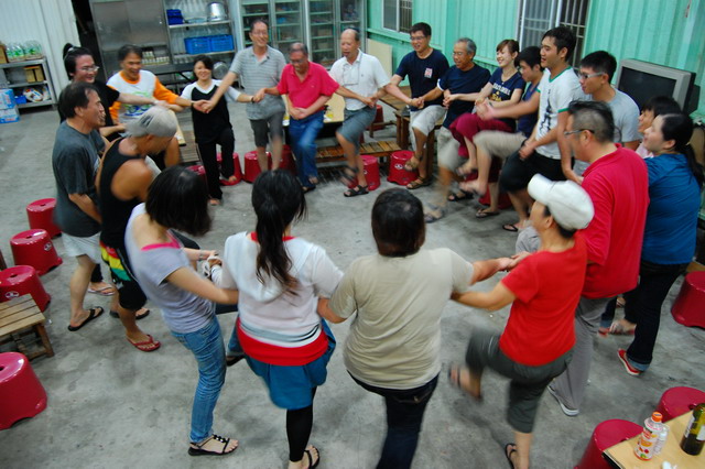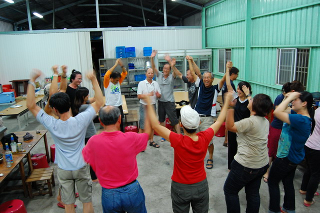晚餐過後,下個節目原本應該是在南澳灣的沙灘上舉行的夜光營火晚會,但由於滂沱大雨之故只能在室內舉行。