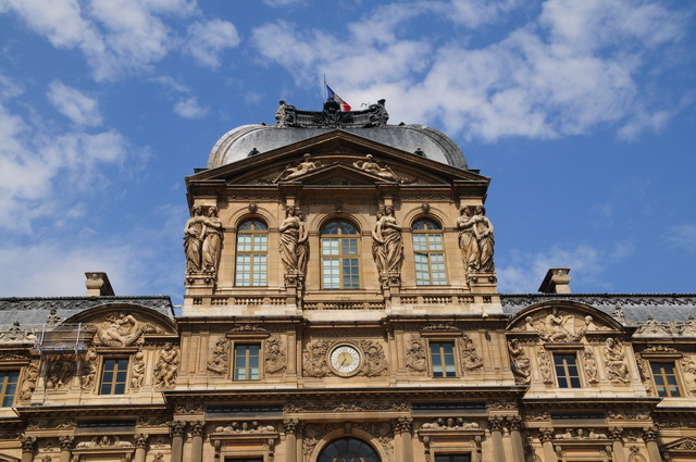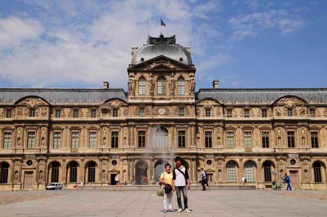 再仔細瞧,這些高聳且傾斜的屋頂,考究的煙囪,尤其兩側的角樓竟是如此熟悉,它和我幾天前所遊歷的羅亞爾河兩岸的城堡群相竟是如此相似,我不禁啞然失笑,原來這些特別的設計概念應該源自於法國中世紀城堡,這羅浮宮的巴洛克可謂是摻合著法國自身特有的風格。
