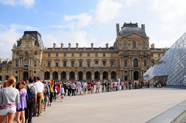 那天早上,在聖傑曼德佩大道(Bd Saint-Germain-de-Prés)旁的café輕鬆吃過早餐,一路漫步走去,先穿過法蘭西學術院(Académie française)、再跨過藝術橋(Pont des Arts)就是羅浮宮。才走進羅浮宮方形中庭(Cour Carrée)南邊的入口,看到洶湧的參觀人潮和長長的等待購票的人龍,再衡量自己只有區區半天時間的預算,“怎麼欣賞呢?”這答案似乎已不辯自明:雖然進得寶山來,但甭想一次看完,再說,不但時間不允許,個人的精神和專注力也不允許,還不如精心挑選幾樣,慢慢地看、深深地看,把五官打開,盡情享受一場美的盛宴。