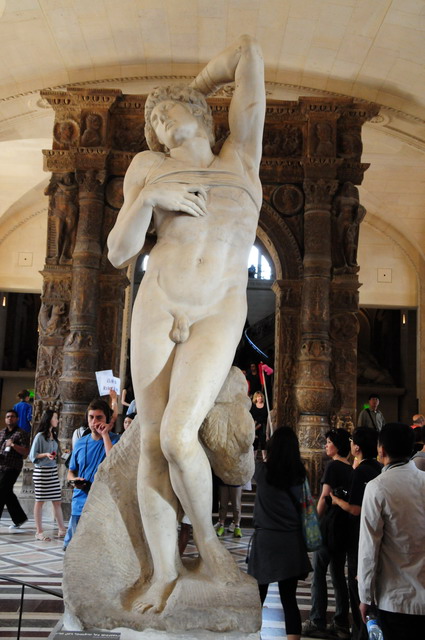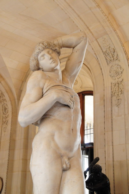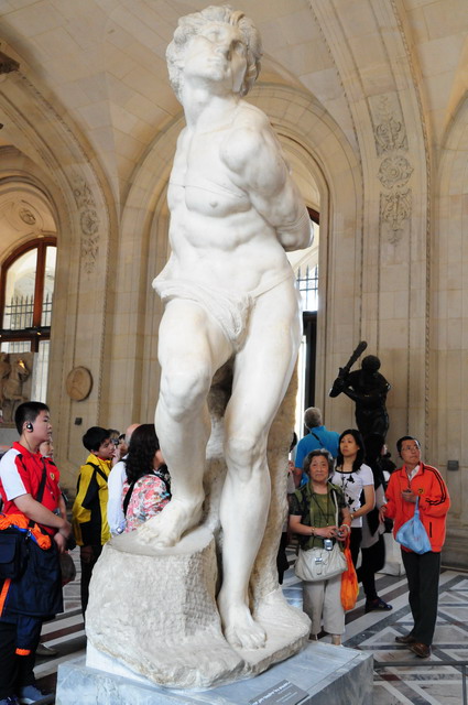 萬萬沒有預料到竟會在此大廳內見到米開朗基羅的作品---兩尊他中年時期的雕刻,《垂死的奴隸》以及《被綑綁的奴隸》,真是欣喜。