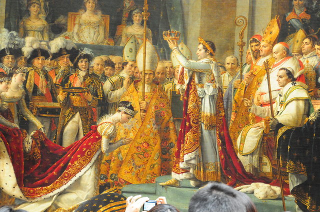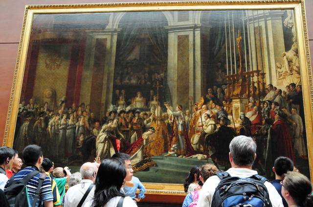 拿破崙的加冕典禮Le Sacre de Napeleon,法國畫家Jacques Louis David,1806~1807油畫 6.29m x 9.79m。描述1804年12月2日拿破崙一世於巴黎聖母院舉行加冕典禮的盛況。為了要看清楚這六點多公尺高,九點多公尺寬的巨畫,我必須要不斷的退後,退至離畫10公尺處,才能將這張模擬聖母院內的大場景完全納入視線之中。