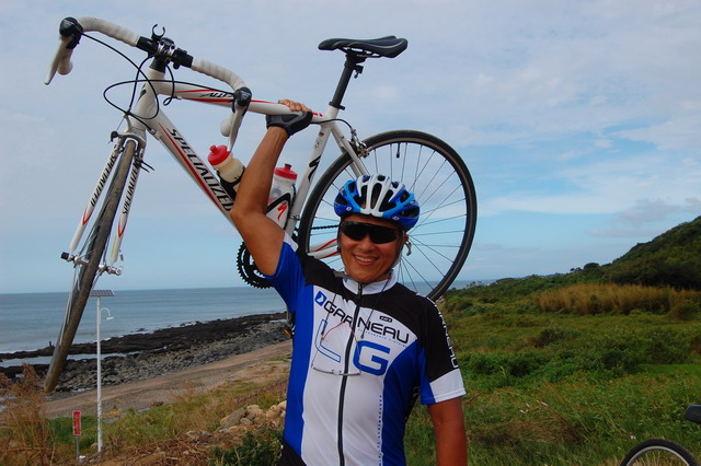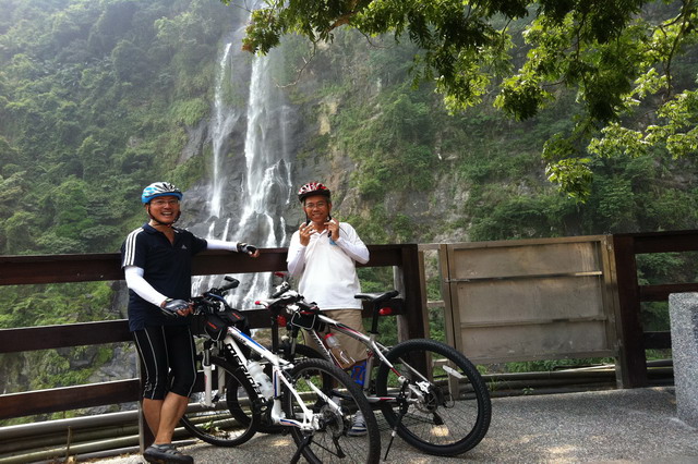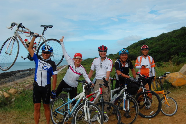 突然會對騎車起心動念,全要歸功兩個人:阿舍和浩苓。原來,每週五一起健行、泡湯的七隻老鳥當中不乏單車老手:曾是台大橄欖球校隊的Peter擁有全套裝備,要不是一次嚴重的摔車引起老婆大人的嚴重關切,否則,從太魯閣到武嶺這段艱困的爬坡地獄可能早就來回好幾趟了;Ben的車齡更早,20年前就曾鐵騎環島,他那匹老鐵馬至今還被他供在家中,三不五時會牽出來讓它活動一下齒輪;酷愛運動的阿舍,特別喜歡述說他在美國加州海岸御風奔馳的經驗,他擁有路跑車和登山車各一輛,這兩輛車材質講究、金光閃閃,好像頂級的紀念車款,令人稱羨;浩苓,家中人口簡單,但車庫裡的小摺、路跑車、登山車加加起來竟有五輛之多,原來騎單車是他們「家族」的最愛,每次假日出遊隨便湊湊總有個七、八騎。