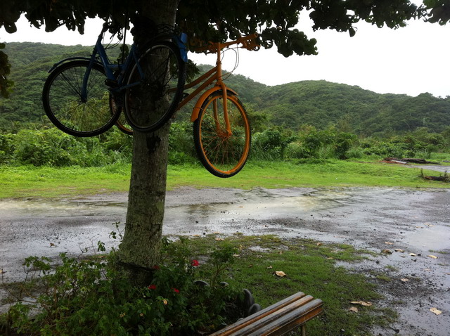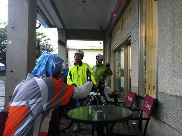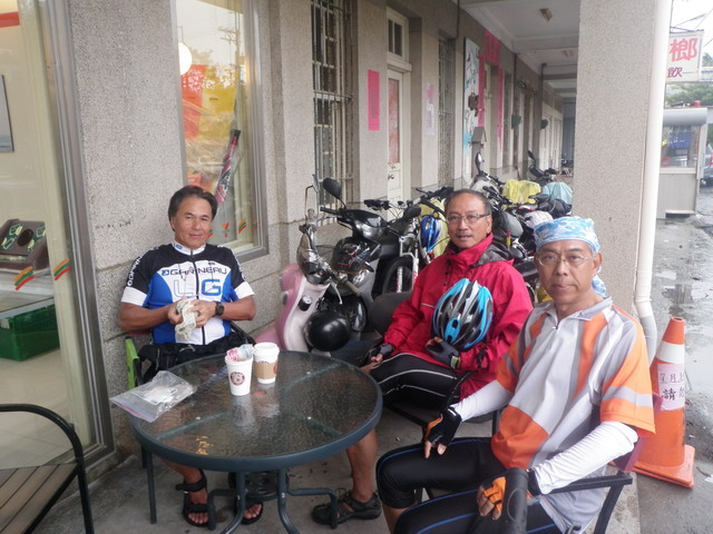 昨天,才剛入夜,風雨就來了。雨水打得民宿的塑膠雨篷叮叮咚咚地響個不停。夜裡晾衣服時心裡忖度,既使脫過水這衣服到明天早上也未必乾得了。果然,今早起床一看,天氣變本加厲,雨勢更大,還刮著風。望著這濕漉漉的天色騎士們心情不免沮喪、浮動,不免自問:還要冒著風雨繼續騎下去嗎?或者,就此罷休,找出一條最短的路徑以最快的方式騎到最近的火車站搭車回台北,草草結束這段旅程?當然,這問題成了早餐餐桌上最重要的討論議題。此刻的我則有如站在十字路口上,心中存在幾分矛盾!