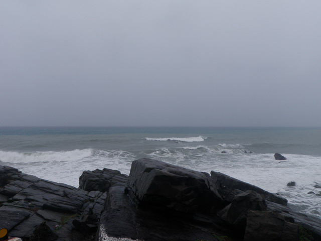 自旭海往東騎一小段199甲之後很快的就接上台26線,又重見太平洋,但此刻海洋如此灰暗、低調、乏味,曾幾次試著停下來欣賞這和我的期待完全不一樣的南台灣海岸,但雨水不留情,眼鏡濕糊得令人毫無興致。(Eric提供)