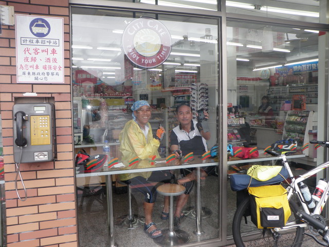 吃完中飯,到小7去喝杯咖啡,巧遇兩位自香港來的騎士,正想要沿著我們的來時路趕往壽卡,浩苓正給他們兩位面授機宜。