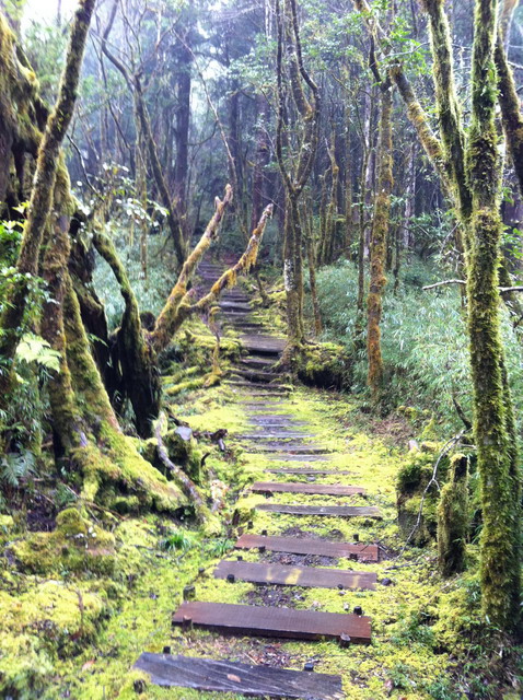 鐵杉林自然步道位處海拔2000~2200公尺,沿途有著不同的林相,除了有針葉林、闊葉林之外還有密集的紅檜和台灣扁柏,但最令我驚訝的是,在這個潮濕的季節裡,這森林居然也會有這樣的景象,像極了熱帶雨林的模樣。