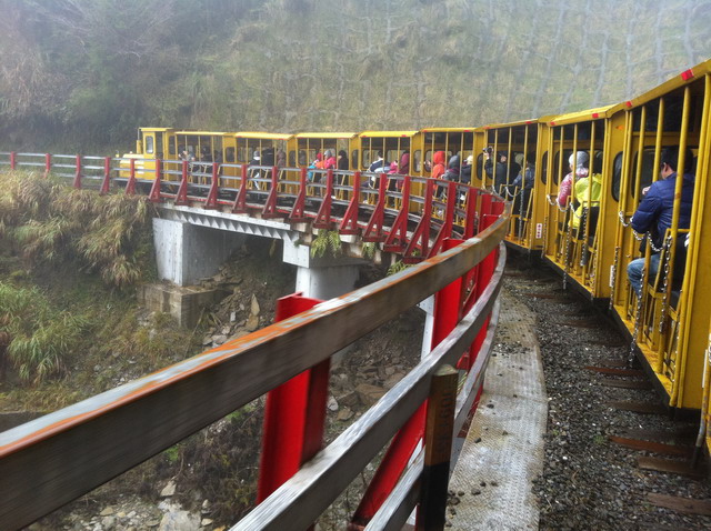 蹦蹦車車道全長3公里,行車時間約20分鐘。或許是因為這蹦蹦車看起來十分簡易,有人嗤笑這蹦蹦車是小孩子玩的玩意,但對我而卻另有一番義意。大學時代,除了救國團的活動之外,那時候最時尚的戶外活動就是邀約不同校的男女生來一趟太平山翠峰湖健行,或走一趟三天二夜的溪阿縱走,這些都是忘不了的青春回憶。此刻,我坐在車內依舊是喜滋滋的。
