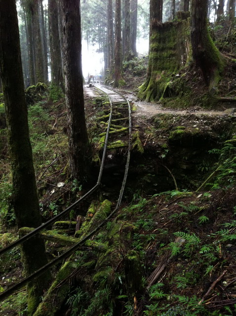 沿著長長的棧道行走,昔日的運材軌道靜靜地匍匐在山腹間,其中彌漫著一股長長的、濃濃的懷舊風。