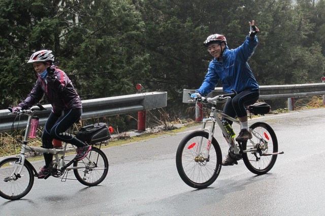 雨後的太平山顯得特別清淨,太陽尚未露臉,但天色相當明亮,溼度溫度適中,是個騎車的好天氣。你瞧,每個人無不眉飛色舞,擺出不同的姿勢,為自己加油。