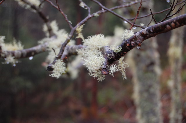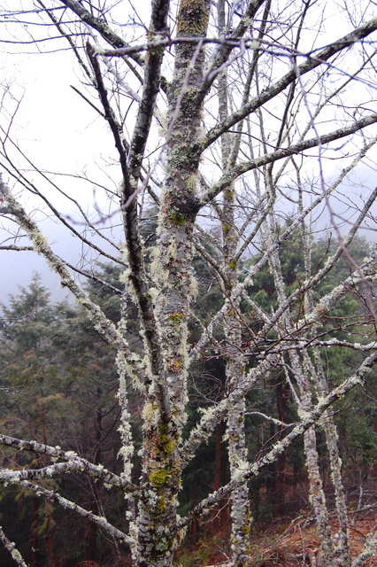 首先要克服的是那4.5公里的爬坡,但速度放慢,調好變速器,找到自己的節奏,這坡段,此時回想起來倒也不難。對於前方重重的危機,我竟然一無所悉,卻被眼前掛在林稍的松蘿所吸引,我停下來拍了幾張照片,順便等了一下後面的四位小姐,一直看到她們都跟上來我才放心的再騎上路。
