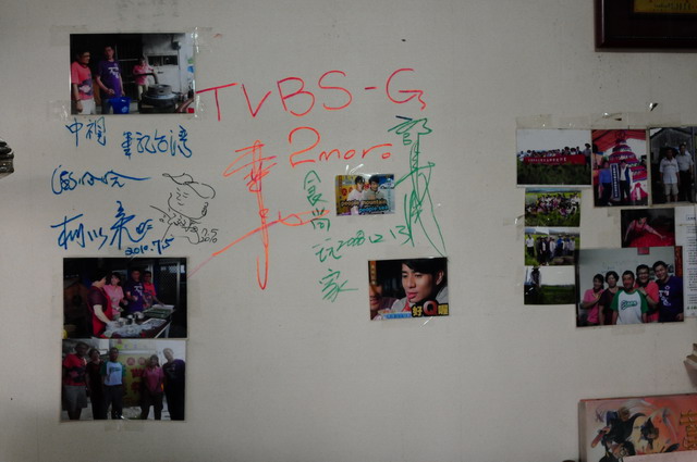 從客廳內的這一面「名人牆」,再加上門口的旗幟、夫妻倆逢人就發出的名片設計,可以知道聰榮老伯這一家人是懂得市場行銷的。