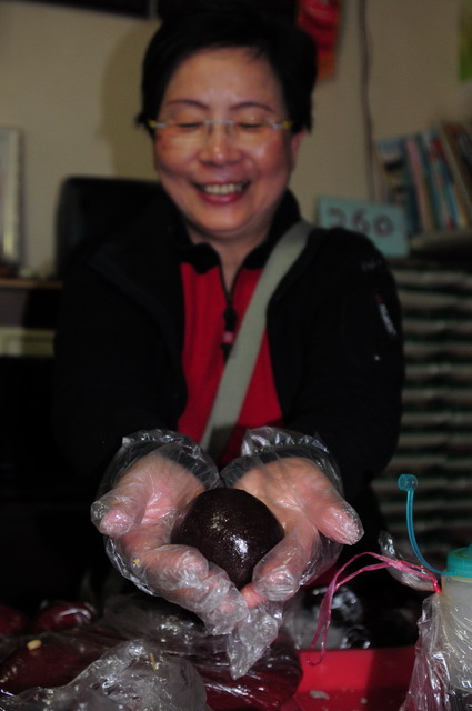 接著,寶珠女士自廚房端出剛蒸好的紅麴發糕,剛剛才灌的漿,現在就有熱呼呼的糕可以吃,大家又是一陣歡呼!