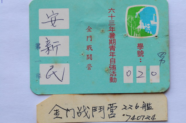 至今我還留著當時我所配帶的識別證,那次是六十三年度救國團的金門戰鬥營。