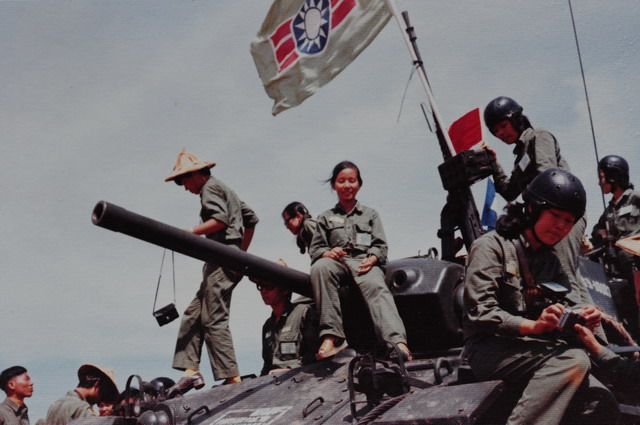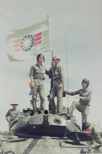 那時候,國軍的主力戰車即是眼前的M-41華克猛犬。車頂飄著的是救國團團旗。
