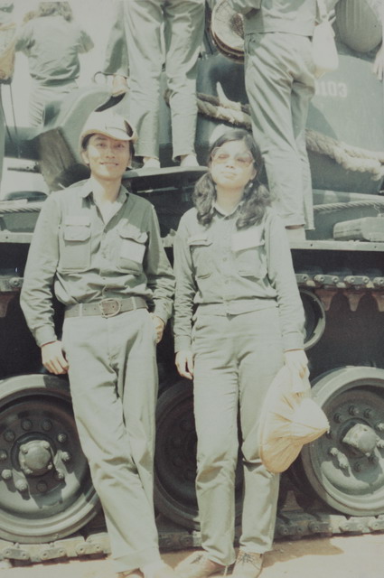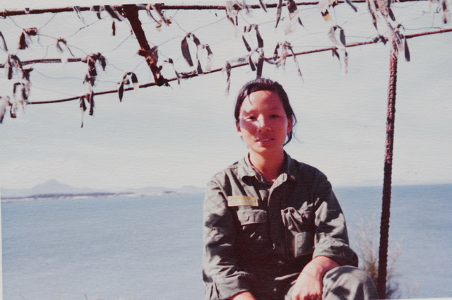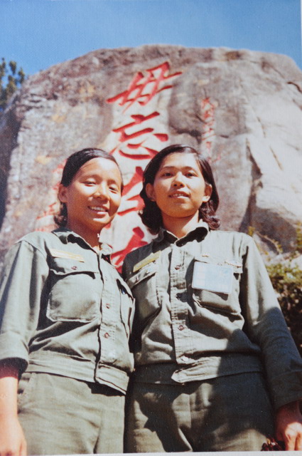 和麗真同行的同班同學彭麗雪。上岸後就改穿軍服了,真佩服主辦單位,那時候也有準備給“哈比族”穿的草綠服!