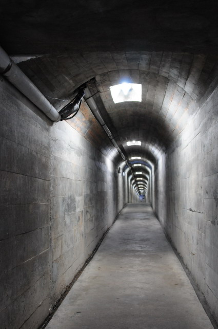 金門的防衛與作戰設施都轉入地下,「戰備坑道」亦是金門風景的特色之一,我走過「瓊林戰鬥坑道」、「金城民防坑道」、「獅山砲陣地」、「翟山坑道」要不是因為維修之故而關閉,不然我也有機會走一趟「成功坑道」。這是進入馬山觀測所大門之後,到觀測站之前所要通過的一段全長174公尺的戰備坑道。像個時光隧道,引領你回到過去。(攝於馬山觀測站)