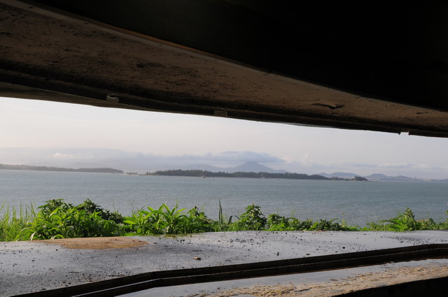 從馬山瞭望角嶼。馬山位於金門東北角,距中共所轄的角嶼僅2100公尺(退潮時1800公尺),為金門本島距大陸最近的據點。在雙方對峙的時期是前線基地之一,有天下第一哨之稱,今日則為熱門觀光景點。(攝於馬山觀測站,從碉堡射口望出去)