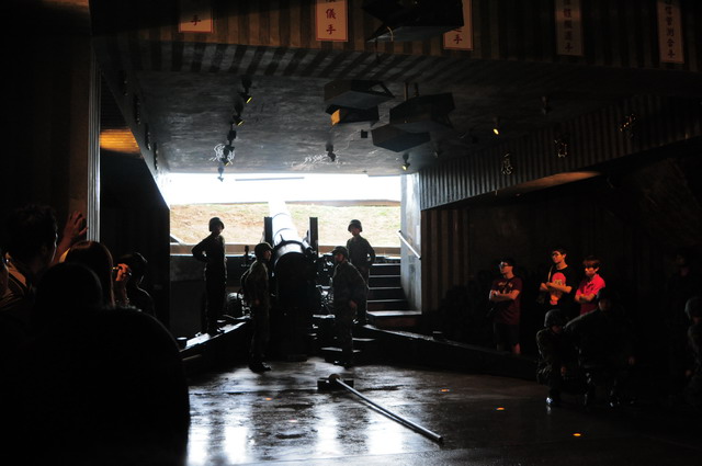 這是一門改變八二三戰局的「八吋榴砲」,坐落在508公尺長的花崗岩坑道底。民國47年的八二三炮戰,中共曾夢想以五天攻下金門,卻在連打四十四天後被國軍的八吋榴砲震天一響,慌慌張張的以為國軍使出了原子彈而逼使共軍以單打雙不打收場。令人驚訝的是看完砲操之後才知道,剛才為我們表演的阿兵哥竟然都是金門大學的學生所喬裝的,男生女生都有。(攝於獅山砲陣地)