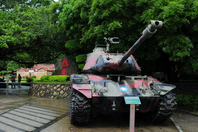 曾為戰地的金門,處處都陳列著舊日的各式各樣的殺人武器。這是我和麗真都乘坐過的M-41華克猛犬。(攝於榕園)