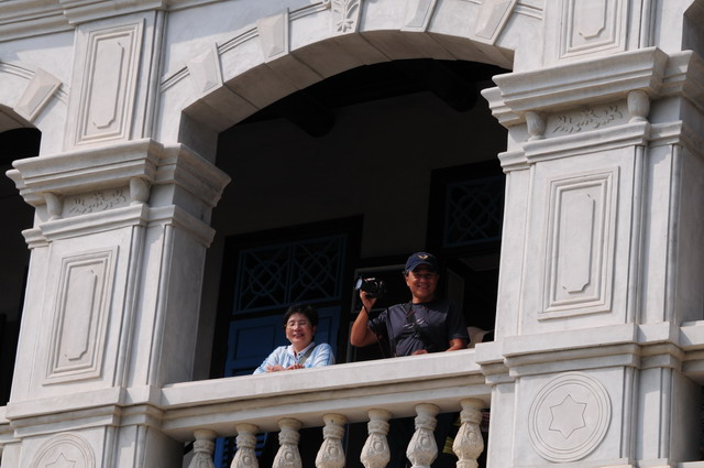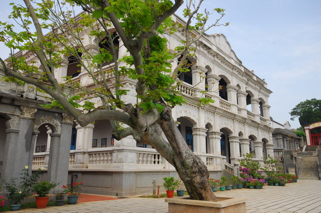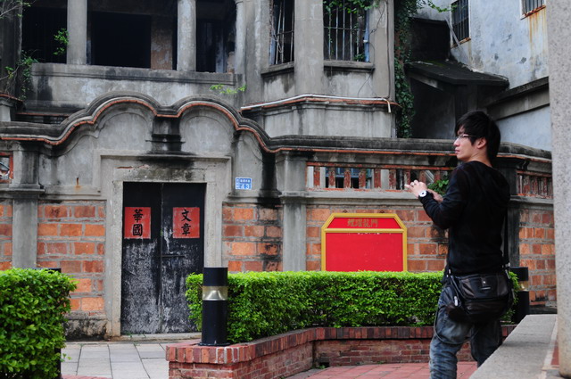 陳詩吟為金門高坑人,清末1903年前往新加坡、印尼經商致富,於民國21年回鄉期間在後浦建此屋,現被列為縣定古蹟。大魏叫我們仔細看,有沒有瞧出這樓房像一隻蹲伏的烏龜?我倒注意這洋樓裝飾精緻,有南洋風十足的木質百葉窗,樓面山頭有雙龍拱仙女,不論是在柱頭上或在簷飾帶等地都有繁複的雕刻,處處展現中西各異卻又個個爭奇的趣味。