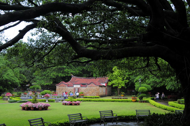 上午才下過雨,雨後,園內的老榕樹格外青綠,搭配上典雅的「慰盧」,意境頗佳。
