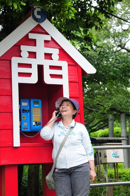 再訪金門,麗真一路上情緒都十分愉悅,在具有金門當地造形特色的電話亭上談笑風生。