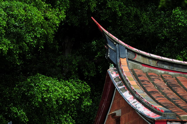 這是燕尾脊,翹脊,屋脊兩端彎曲翹起上揚,尾端分叉成兩二支如燕尾。(攝於榕園)
