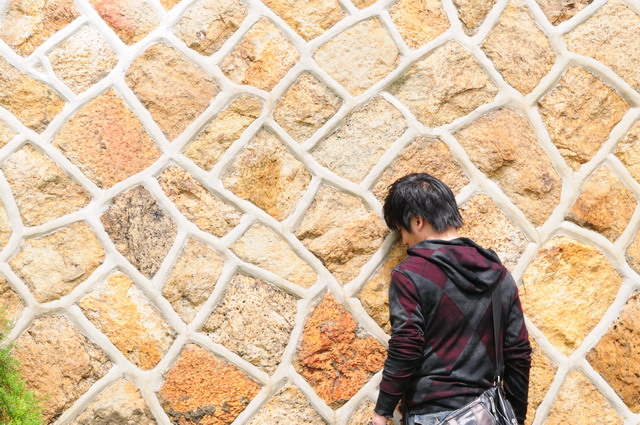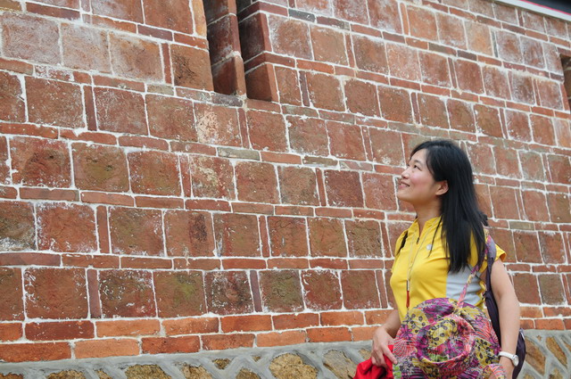 這是「亂石砌牆」,柏軒攝於榕園裡的慰廬牆前,他一副好像站在耶路撒冷的「哭牆」前。