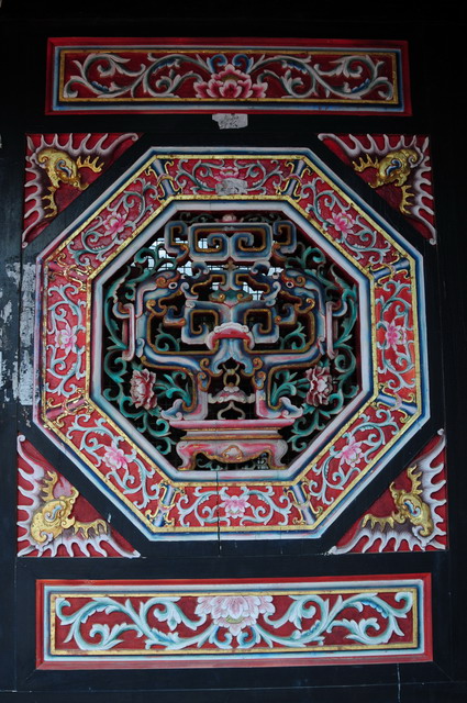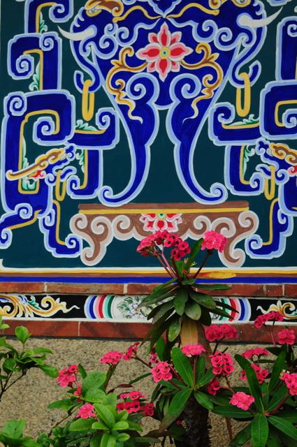 土牆上的漆彩,與前幅的木雕相比,毫不遜色。