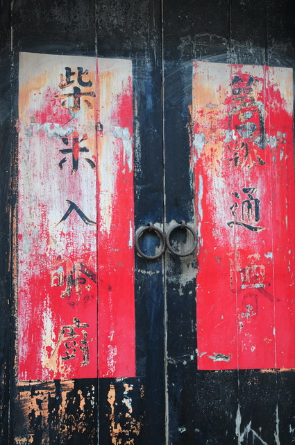 除了淋漓盡致的雕樑畫棟之外,我又看到讓我拍不膩的老厝的門板和老厝的門環,越老越是散發出古意,你瞧,它老得這麼斑駁!