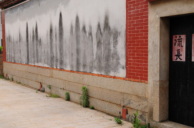 水頭聚落的風景之五,好似潑墨畫的一道粉牆。