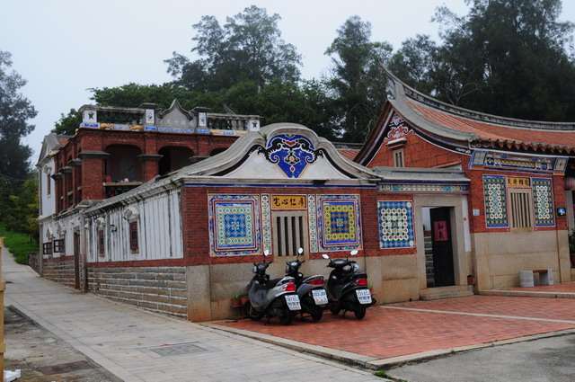 黃天露宅。這棟房子亦是中西合璧的建物,二落大厝加右護龍,護龍後落起洋樓,洋樓的正面山頭上,又有「民國十九年」字樣,當為落成之年。建物正面石堵的「彩釉面磚」,十分精采,紋樣有花卉、水果等圖式,顏色經半世紀之餘力久不衰,色澤仍鮮豔如昔,很是吸睛。