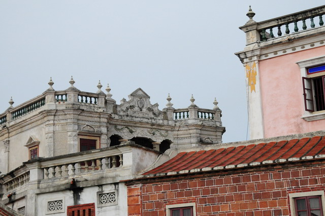 黃輝煌洋樓風景之一。在金門在地的「馬背脊」融入了西洋巴洛克的裝飾中。