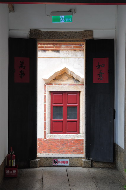 看了簡介,知道這山后聚落是由頂堡、中堡及下堡三個區域所組成,遊客最常逗留的山后民俗文化村其實只包含中堡而已,而中堡與頂堡兩者是王氏(太原衍派)宗族聚居的所在。該村建於清光緒26年(1900),是由旅日富僑王氏父子闢建的族居,包括了16棟閩南傳統二進式建築,一棟三落大宅及一棟王氏宗祠共18棟,合稱「十八間」。